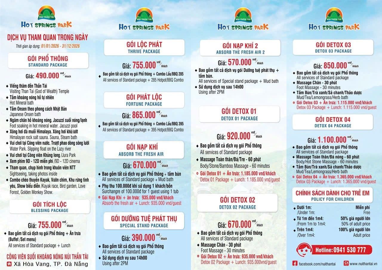 | 포춘 패키지 | 865,000 VND | 기본 패키지 + 프리미엄 핫팟 또는 BBQ |